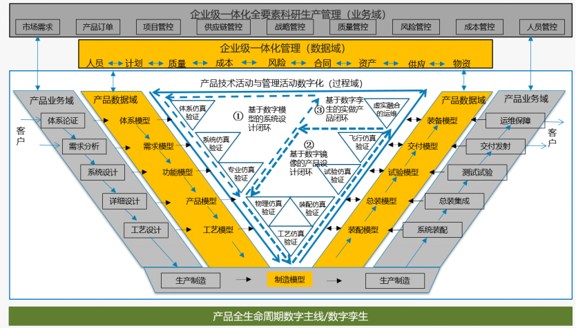 從以文檔為中心向模型數(shù)據(jù)驅(qū)動的研制模式轉(zhuǎn)型,重點是構(gòu)建實物產(chǎn)品的數(shù)字產(chǎn)品空間。利用產(chǎn)品數(shù)字化、過程數(shù)字化、規(guī)則數(shù)字化技術(shù),形成產(chǎn)品數(shù)據(jù)域、過程域和業(yè)務(wù)域的融合,支持全生命周期模型體系管理,以及全生命周期技術(shù)和管理活動,逐步形成模型數(shù)據(jù)驅(qū)動的數(shù)字化研制過程。PLM作為管理產(chǎn)品所有資產(chǎn)并有效協(xié)同各利益方的基礎(chǔ)系統(tǒng),是研制模式變革的直接支撐。